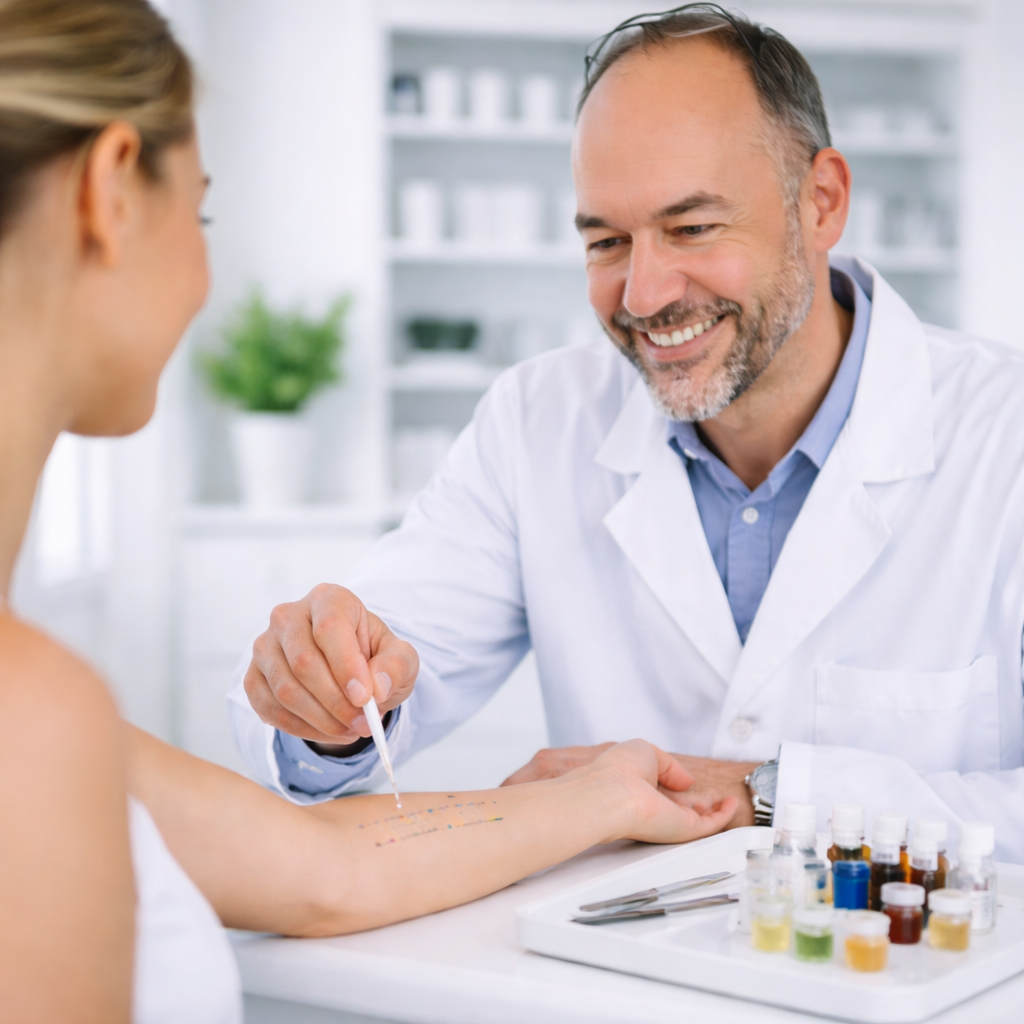 Je nach Beschwerden kommen z. B. Pricktest (auf der Haut), Epikutantest/Pflastertest (bei Kontaktallergien) oder weitere diagnostische Schritte in Frage. Welche Untersuchung geeignet ist, klären wir im Gespräch – abgestimmt auf Ihre Symptome.